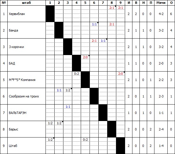 первые игроки по исходам, вторые по счетам, третьи по очкам, работаем.