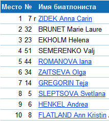 3.ПОДСЧЕТ ОЧКОВ.Гонка в каждой дисциплине состоит из двух этапов-бега и стрельбы.Во время бега участникам предстоит спрогнозировать десятку лучших в первой гонке(в хронологическом порядке;не имеет значения,мужской либо женской)в данной дисциплине.Подсчет очков:угаданное место в десятке-1 балл,точно угаданное место-3 балла.