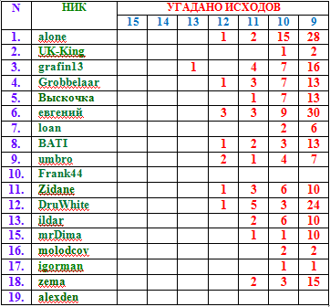 Что бы не размазывать таблицу каждому прогнозисту присвоим постоянный номер: