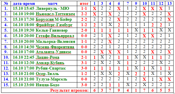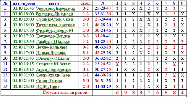 со следующего тиража начнем обсуждение матчей.