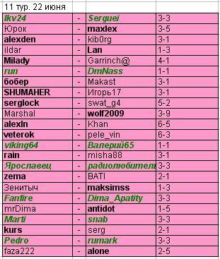 11 тур. 22 июня